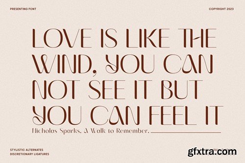 Lovan will bring an elegant, romantic and warm feeling of love to your design project. Equipped with a choice of Alternative Characters and Discretionary Ligatures, all of which are PUA Encoded. Lovan will be a versatile font because it can be used as a Display Font and is still good for writing text.