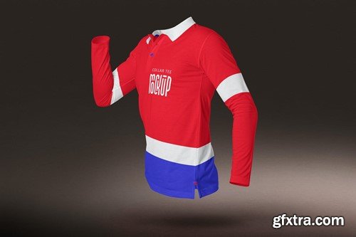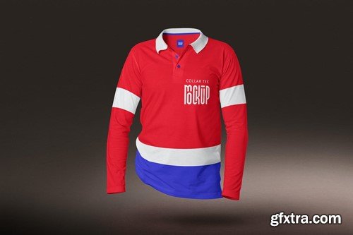 Floating angle shot of the full sleeve collar t shirt mockup.