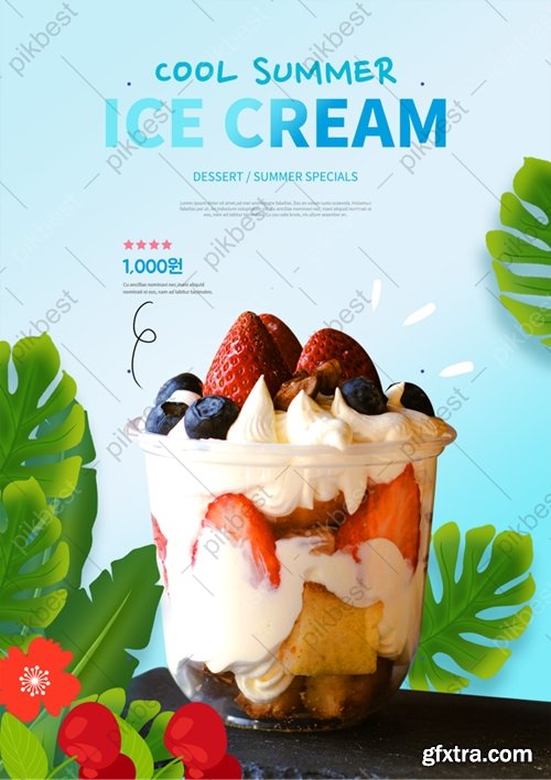 Blue Tropical Plant Summer Ice Cream Dessert Poster 5968904