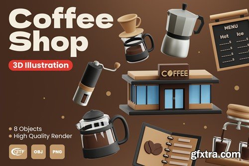 Coffee Shop 3D Illustrations These 3D illustrations can be used for design needs, animation, web design, UI design, presentation slides, posters, and others Highlight Files Included Please contact me if you have any questions. Enjoy!