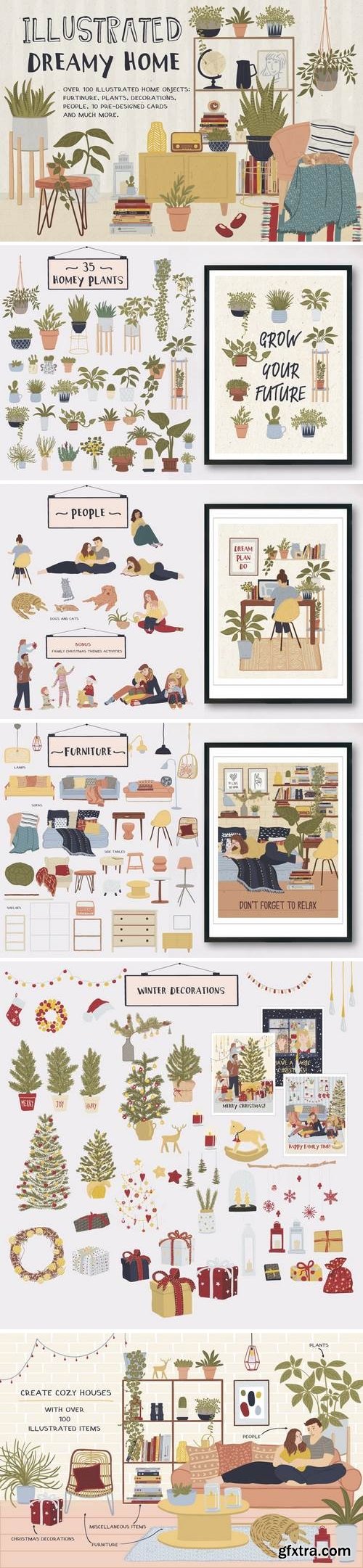 Create easily an illustrated homey designs with this fun toolkit. It includes over 100 illustrated home related objects and people and pets in different poses. Everything is 100% vector files so you can easily change compositions, size and colors. Let’s see what’s included: -Illustrated furniture -Illustrated miscellaneous design objects -Kitchen items -People and Pets -Plants -Bonus: Winter decorations -10 print ready greeting cards This toolkit includes: Vector .Ai 10 files and .EPS 10 vector files. Note: These files are not for Photoshop. Happy creations!